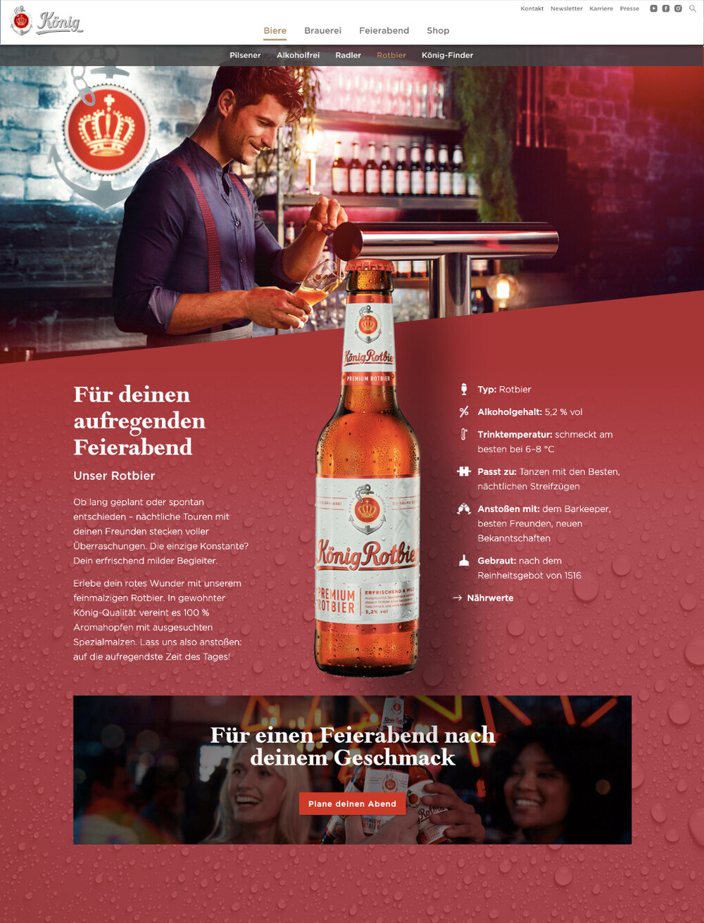 König Pilsener steht für Feierabend. Für uns fing die Arbeit aber erst an.